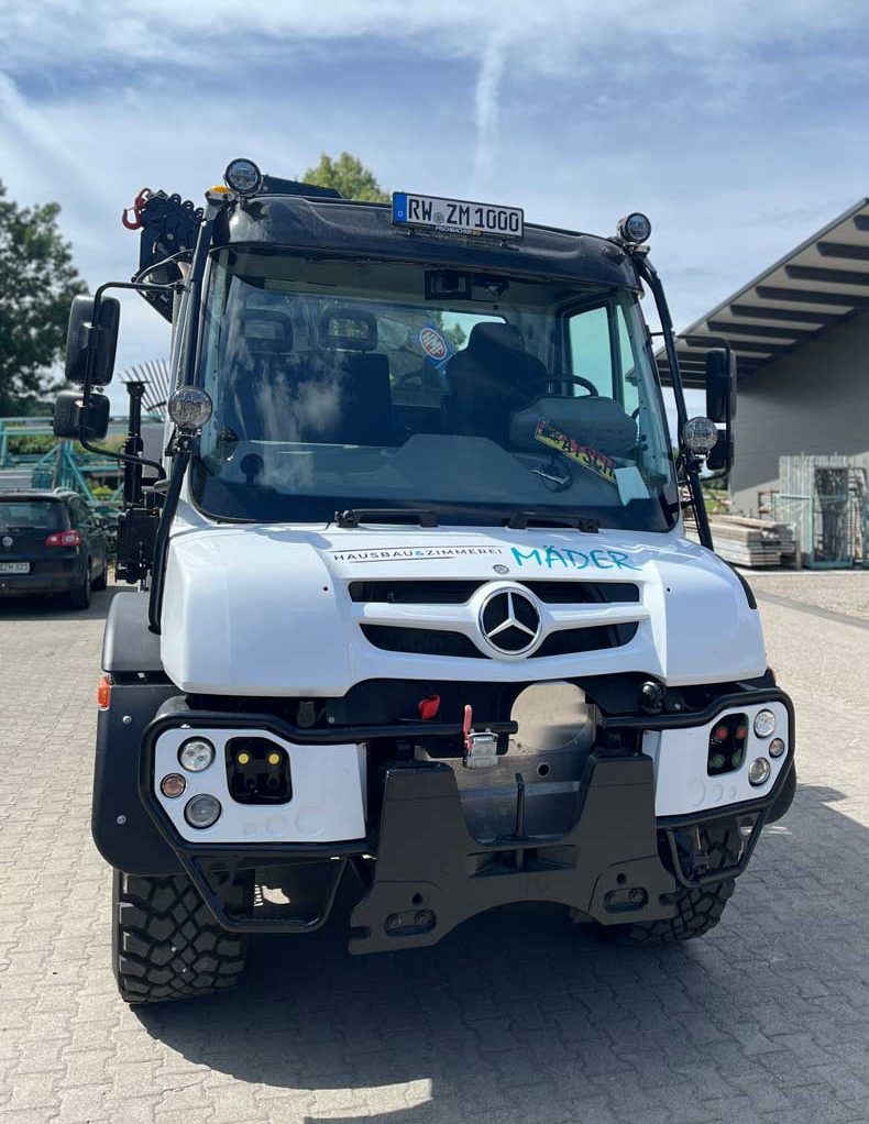 Ob Dacharbeiten, Holzmontage, Sanierungen oder Arbeiten an schwer zugänglichen Stellen: Der Unimog vereint Kraft und Wendigkeit, erreicht Höhen, wo andere an ihre Grenzen stoßen und ermöglicht präzises Arbeiten auch auf engem Raum.